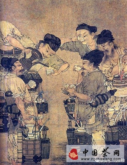 。南宋畫家劉松年的《茗園賭市圖》,便非常傳神地描繪了市井間幾個(gè)茶販正在斗茶的生動(dòng)畫面