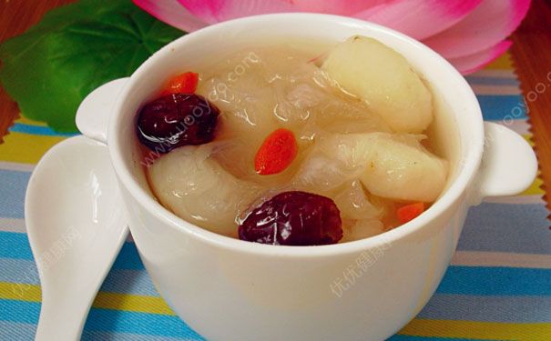 ,煮至浮起放入水果即可。枸杞雪梨銀耳甜湯