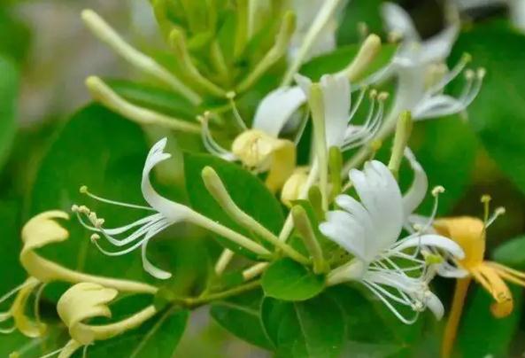 ,它的花采摘以后可以入藥,也可以制成金銀花茶供人們飲用。金銀花茶沖泡的味道甘甜爽口,能清熱解毒,也能消炎殺菌金銀花的葉子性質(zhì)寒涼