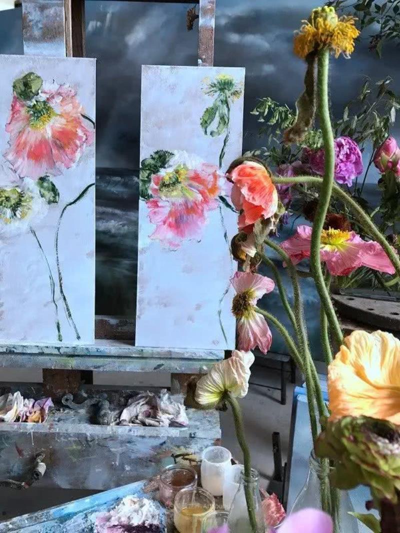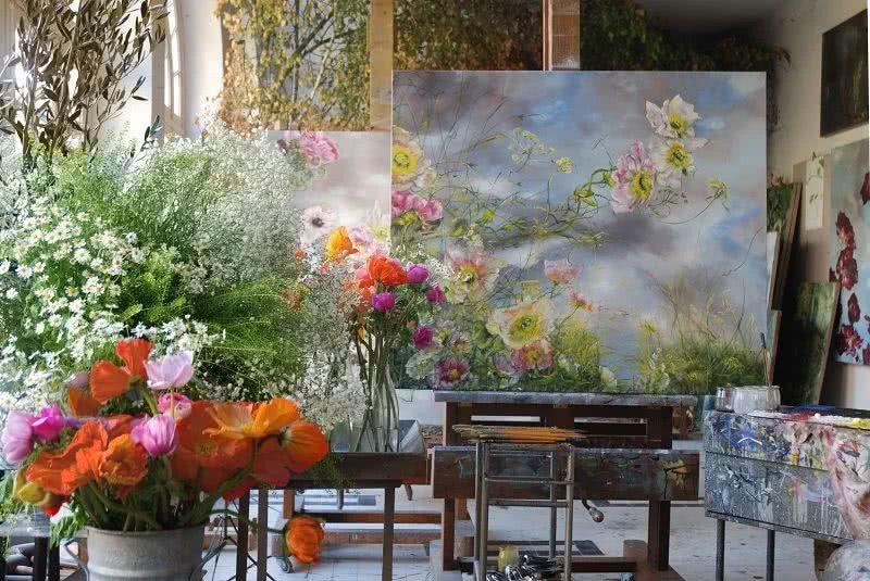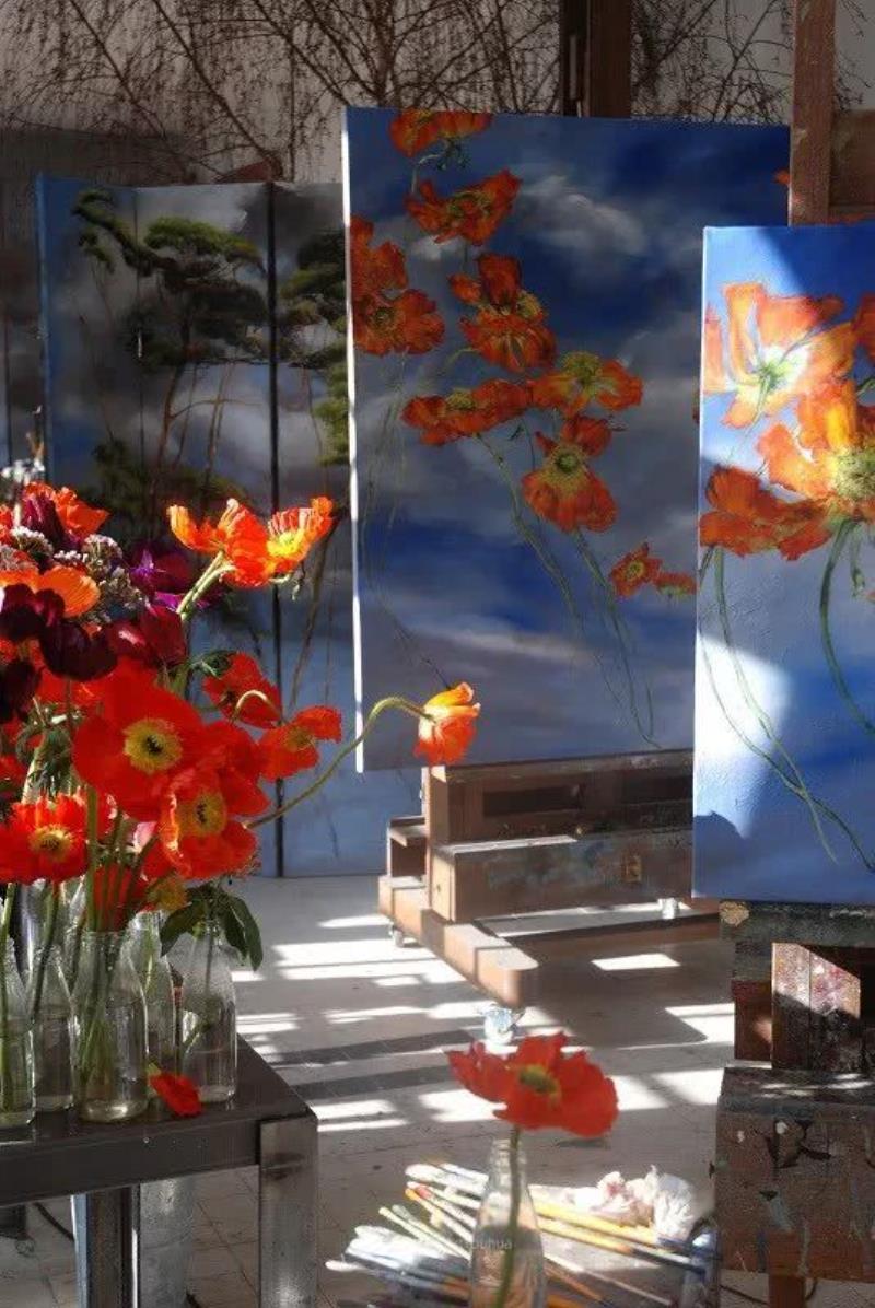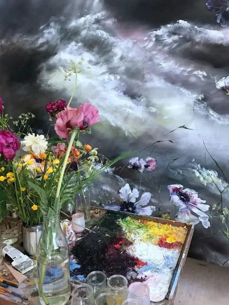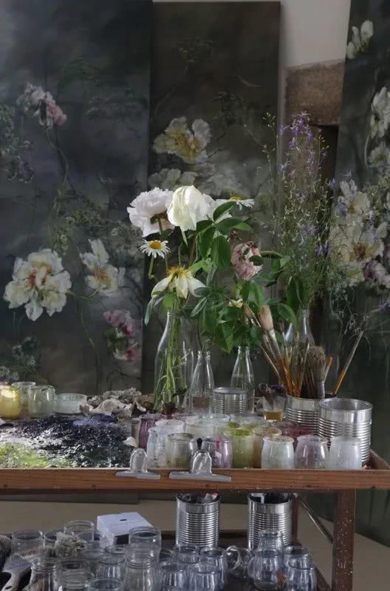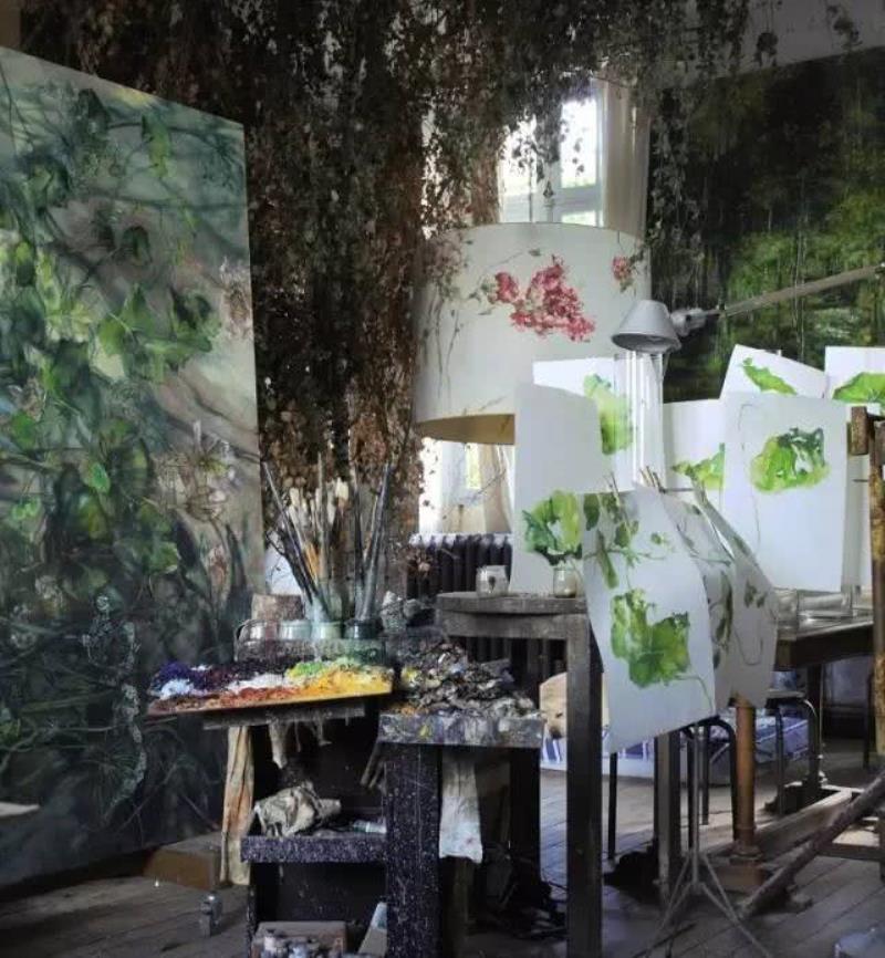 ,加上其演繹手法,以及大幅畫件的組合,作品難免給人充滿濃厚亞洲風(fēng)格的印象Claire Basler的畫室,不像有些藝術(shù)家的工作室那樣亂糟糟的