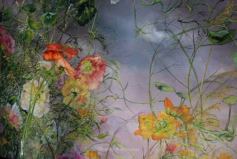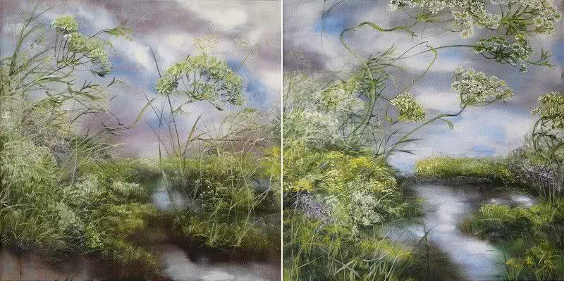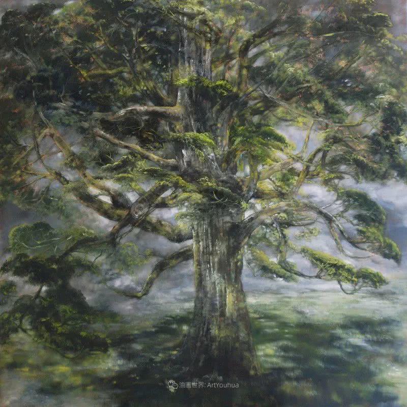 ,卻從不動搖,不向大潮流低頭。喜愛其作品的大眾日漸增多,受著鼓勵,她力抗平凡,繼續(xù)在具像藝術(shù)的方框下追尋自我的主題,在這三十年間,負(fù)起大自然畫家大師的擔(dān)子。被風(fēng)吹得彎腰的長長花柄、氣勢磅礴的樹木、烏云密布的天空及雷電交加的背景都成了她的標(biāo)志。社會眾人正遺棄藝術(shù)歷史上延續(xù)性的中心定律時,Claire Basler的藝術(shù)生涯正好代表著那些嘗試反映過去藝術(shù)的畫家