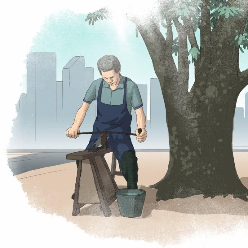 老人聽聞后,更加用心地打磨剩下的幾把刀具