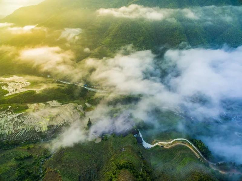 從梯田的遠處遙望,一層層梯田更賦于人們一種動態(tài)美