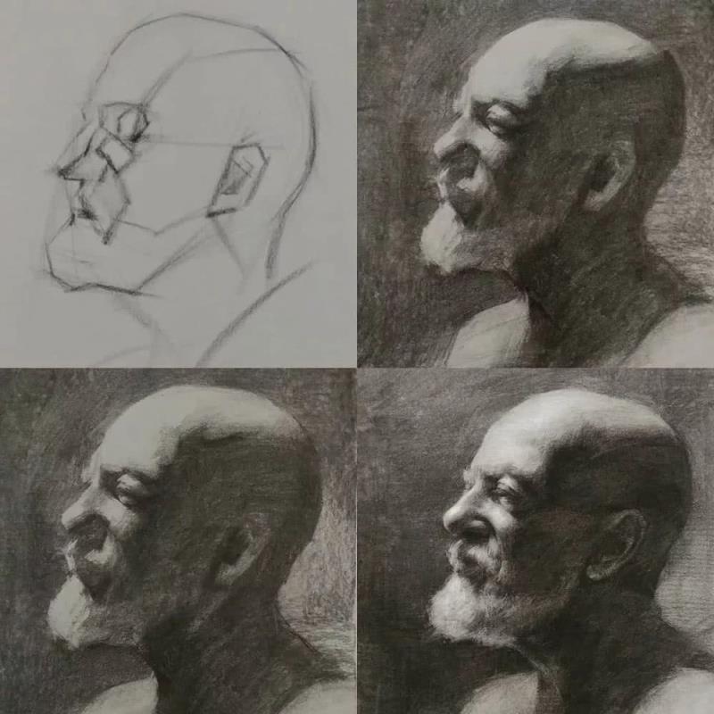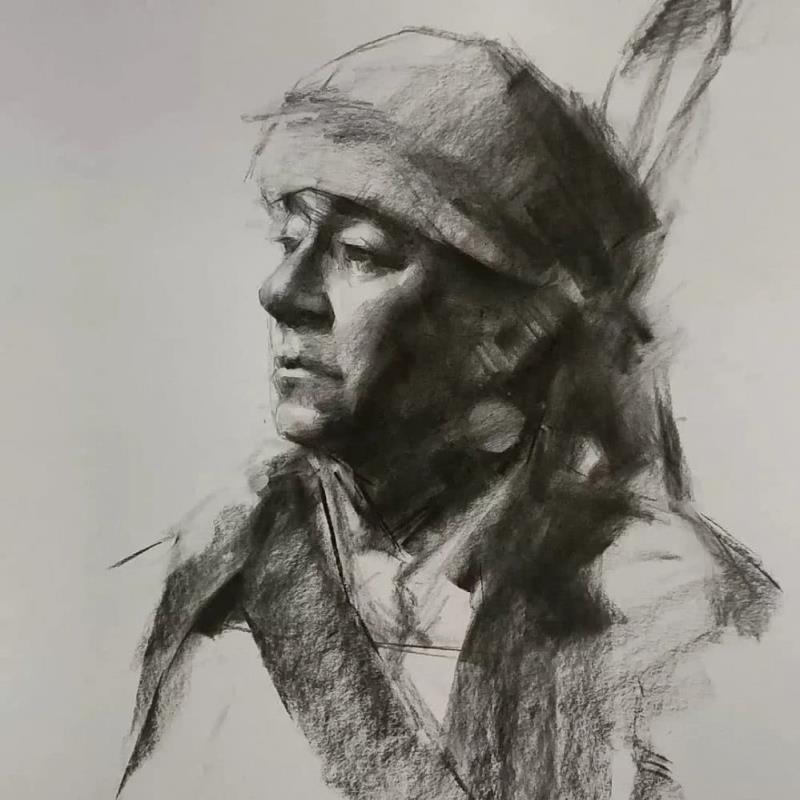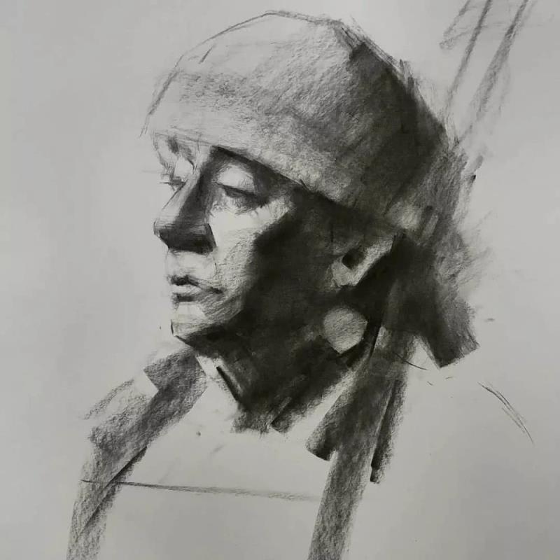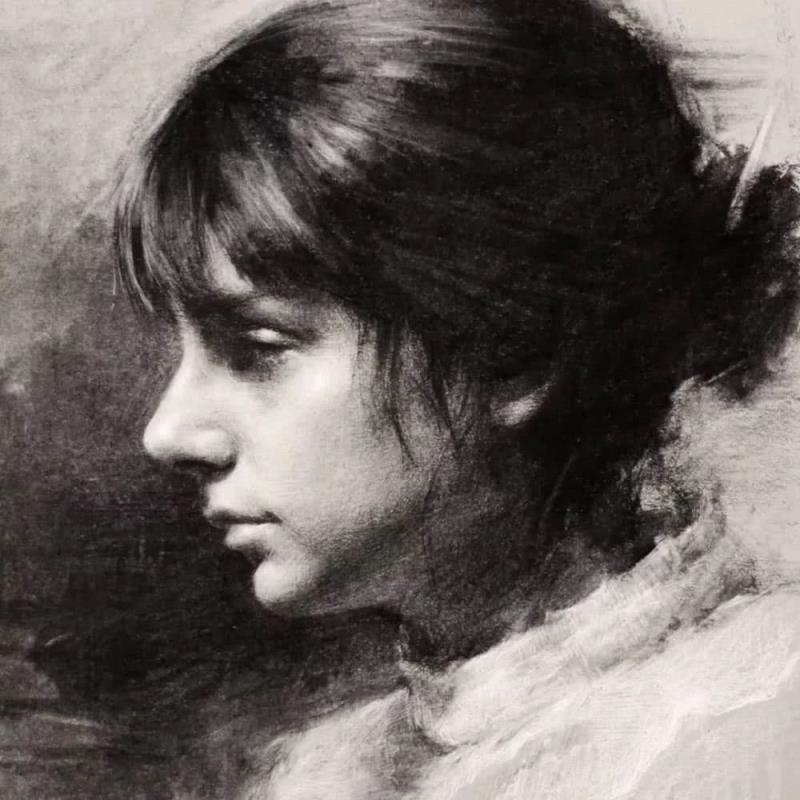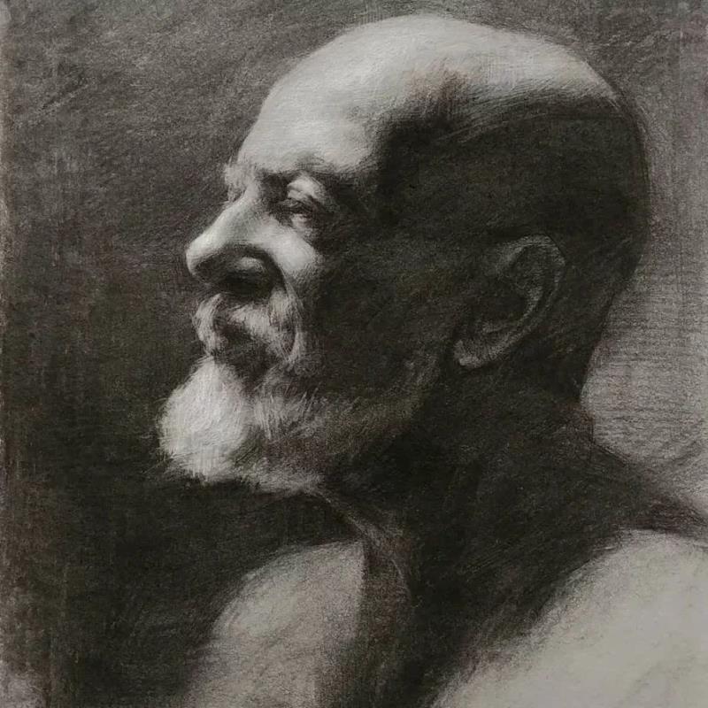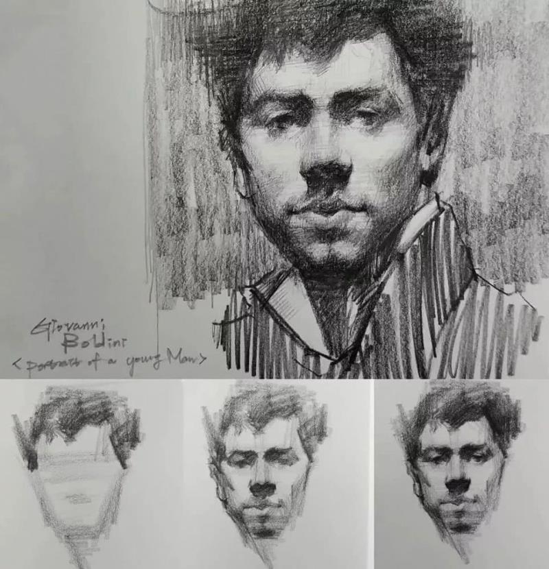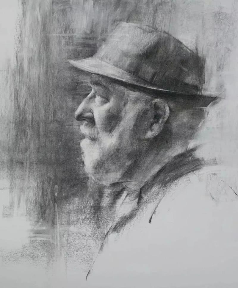 他的素描作品有寫實(shí)的筆觸