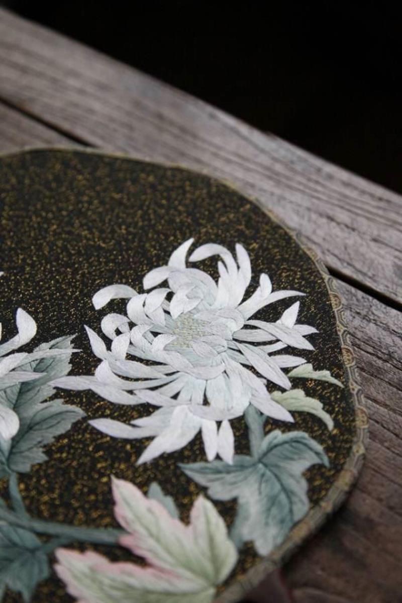 扇面上常繡以山水花卉